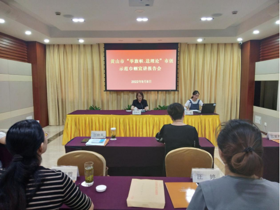 为全面深入学习领会习近平总书记在省部级主要领导干部专题研讨班上重要讲话精神和《习近平谈治国理政》第四卷提出的新思想新观点新论断,扎实推进学习贯彻工作。9 月 8 日,黄山市妇联举办全市妇联系统“举旗帜·送理论”市级示范巾帼宣讲报告会,邀请市巾帼宣讲团成员、市广播电视台记者汪娜作“举旗帜·送理论”市级示范巾帼宣讲。全市妇联系统30余人参加。